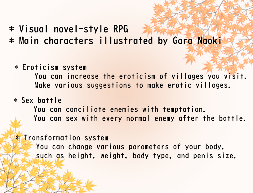 "Small on Top" is an erotic RPG with character driven events and narrative. It follows the Adventurer as he explores the world and meets many different characters, some who would love or insist on joi